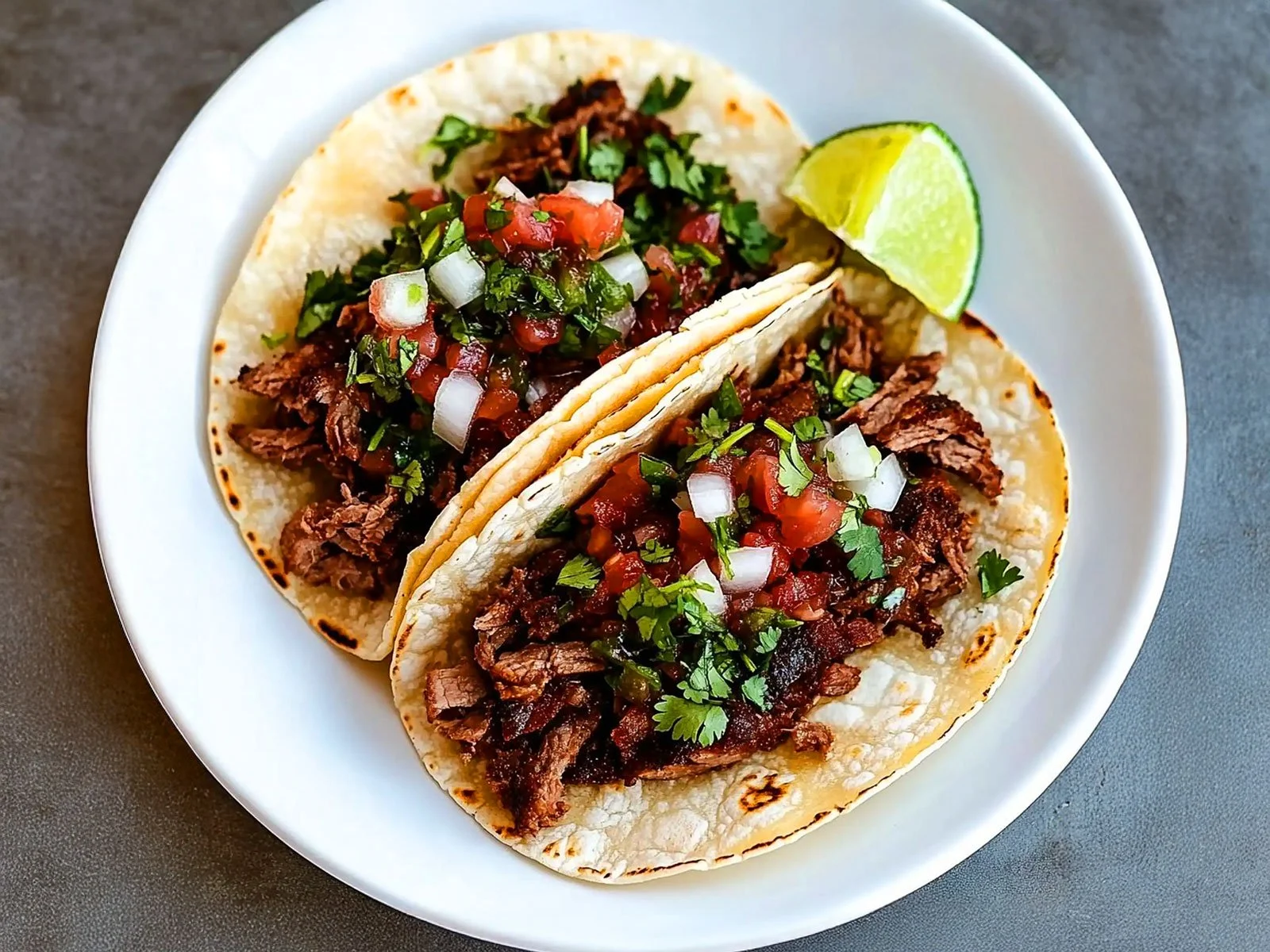 Choice of meat topped with cilantro, onions, and tomatillo salsa on a corn tortilla.