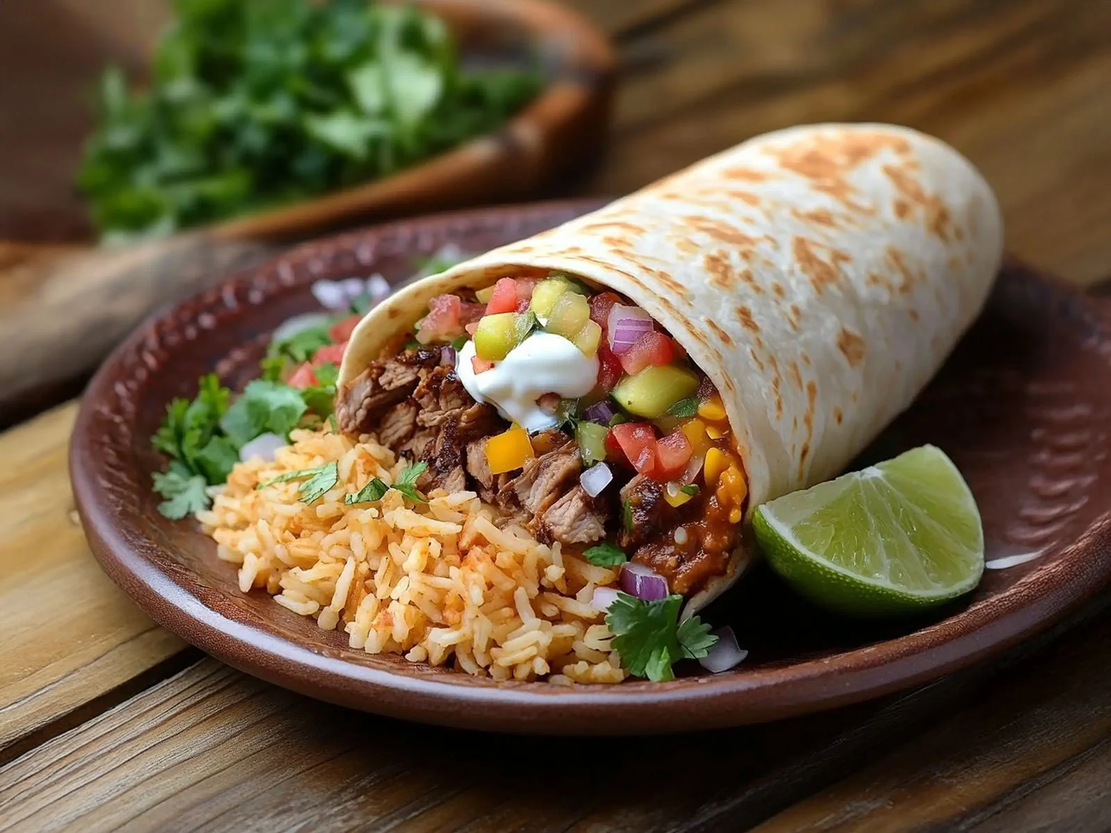 Choice of meat with rice, beans, lettuce, sour cream, guacamole, and tomatillo salsa